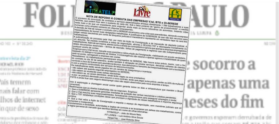 As federações FITRATELP, FIT Livres e FENATEL e seus sindicatos, entre eles o SINTTEL-RS, exigem:
