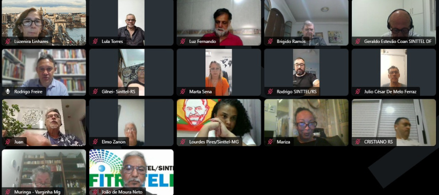 Dirigentes do SINTTEL-RS participaram, de forma virtual, nos dias 6 e 7 de abril, da reunião ordinária do Conselho Diretor da FITRATELP, reunindo dirigentes sindicais de todo o país. O encontro teve como objetivo debater a conjuntura política, alinhar estratégias de luta e avançar na organização da categoria diante dos desafios colocados, especialmente no setor de telecomunicações.